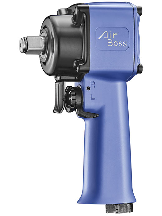Air Boss系列工具的尺寸范围从以下:Micro stubbby冲击,零件号26402与3/8 "驱动器和26403与1 / 2 "驱动器。这些是市场上最小最轻的工具,重量不到2.5磅。,同时能够提供400英尺磅。起飞的力量。